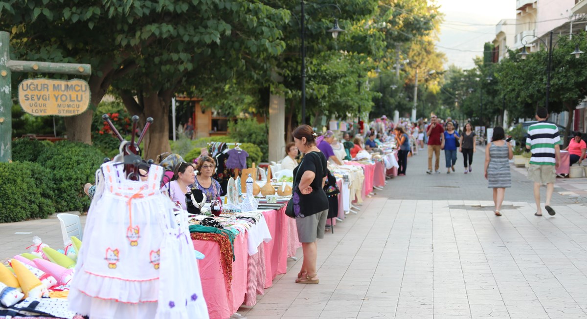 Selçuk Belediyesi’nin sosyal sorumluluk projeleri kapsamında hayata geçen Artemis Kadın El Emeği Pazarı geçtiğimiz Mart ayı içerisinde hizmete girmişti. Pazarda Kadın Danışma Merkezi’nde açılan kurslarına katılan kursiyerlerin yanı sıra Selçuklu kadınlar el emeği ürünler satıyorlar. Artemis Kadın El Emeği Pazarı’nda her türlü el işi ürünlerin yanı sıra takı, ev yapımı yiyecekler de satışa sunuluyor. Yaz mevsimi dolayısıyla 17.00- 00.00 saatleri arasında faaliyet gösteren pazara ilgi oldukça yoğundu.