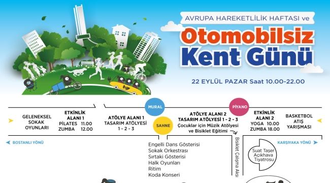 Bu yıl 16 - 22 Eylül tarihleri arasında, 48 ülkeden 2 bin 944 kentin katıldığı ‘Avrupa Hareketlilik Haftası’nın teması ‘Birlikte Yürüyelim’ olarak belirlendi. Hafta boyunca tüm şehirlerde pek çok etkinliğe imza atılırken, Karşıyaka Belediyesi de organizasyonun finali olan 22 Eylül Otomobilsiz Kent Günü için dolu dolu bir aktivite programı hazırladı. Kentlerde otomobilsiz bir yaşamın mümkün olabileceğine dair farkındalık yaratmayı; yürüyüş ve bisiklet gibi çevreci, sağlıklı ve sürdürülebilir ulaşım alternatiflerine dikkat çekmeyi amaçlayan günün etkinlik alanı olarak, Bostanlı Cemal Gürsel Caddesi belirlendi. Bu doğrultuda, Suat Taşer Tiyatrosu’nun arkasındaki cadde, 21 Eylül Cumartesi saat 24.00 itibariyle, 24 saat süresince motorlu araç trafiğine ve araç parkına kapalı olacak.