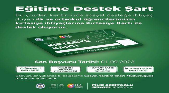 Sosyal desteğe ihtiyacı olan ailelerin çocuklarına verilecek Kırtasiye Kartı başvuruları, öğrenci belgesi, öğrenci velisinin nüfus kâğıdı fotokopisi, kütüphane kayıt belgesi ve ikametgâh belgesi ile Efes Selçuk Belediyesi Sosyal Yardım İşleri’ne yapılacak.