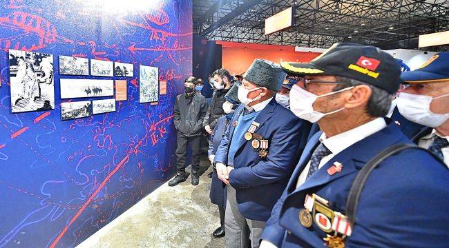 İzmir Büyükşehir Belediyesi, Ödemiş’ten gelen gazi ve şehit yakınlarını Kültürpark Atlas Pavyonu’ndaki "Büyük Zafer’in 100. Yılına Doğru İstiklal Sergisi"nde buluşturdu.