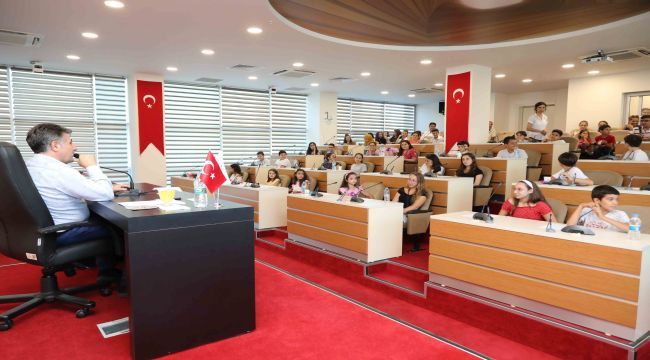 Bayraklı Belediyesi meclis salonunda çocukları ve gençleri ağırlayan Başkan Sandal “En güzel meclis sanıyorum şu an bizim meclisimiz. Hiç böyle bir meclis görmemiştim. O yüzden sizlerle birlikte olmak gerçekten mutluluk verici. O kadar meydanlarda konuştum, stratejik plan ile ilgili konuştum ama şöyle pırıl pırıl gençleri görünce heyecanlandım. Yarınlar sizin. Bizim bugün yapacağımız çalışmalar beş, on, on beş yıl sonra sizin hayatınızı değiştirecek sizin hayatınızı kolaylaştıracak veya zorlaştıracak. Biz de diyoruz ki; madem çocuklarımız ve gençlerimiz için çalışıyoruz yeni bir kent yaratıyoruz biz de bunu çocuklarımıza ve gençlerimize soralım. Acaba nasıl bir Bayraklı istiyorlar? Biz istiyoruz ki, Bayraklı çocuk ve gençlik kenti olsun. Hatta dünya çocuk ve gençlik kenti olsun istiyoruz. Bütün dünya Bayraklı’yı tanısın, çocuklarımızı tanısın, gençlerimizi tanısın. Bir çocuk parlamentomuz olsun arada sizlerle toplanalım, Bayraklı’yı konuşalım. Sonra İzmir’de, Türkiye’de oluşturalım. Sonra dünya çocuk ve gençlik parlamentosu oluşturalım. Onlar da gelsinler burada dertlerini anlatsınlar biz de bütün dünyaya buradan yayın yapalım. Bayraklılı gençlerin de şöyle hayalleri var, şöyle umutları var diye haber yapalım istiyoruz. Onlar burada kalsınlar. Sizlerle birlikte kalsınlar. Siz onlara gidin. Burada sanatsal, bilimsel, sportif bazı faaliyetlerde bulunalım” diye konuştu.