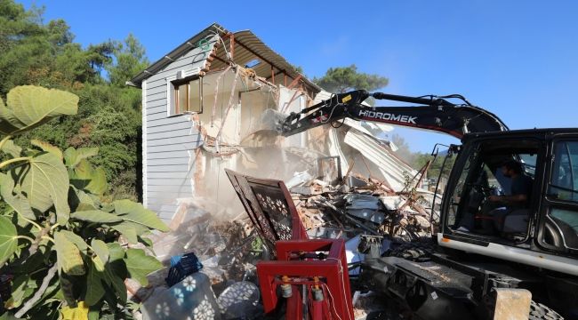 Tespit üzerine yapılar hakkında işlem başlatan ekipler, yasal sürecin sonlanmasının ardından yıkım için harekete geçti. Çam ağaçlarının dikili olduğu orman arazisi üzerine edilen ikisi kaçak villa olmak üzere toplam dört yapının yıkımını gerçekleştirdi.