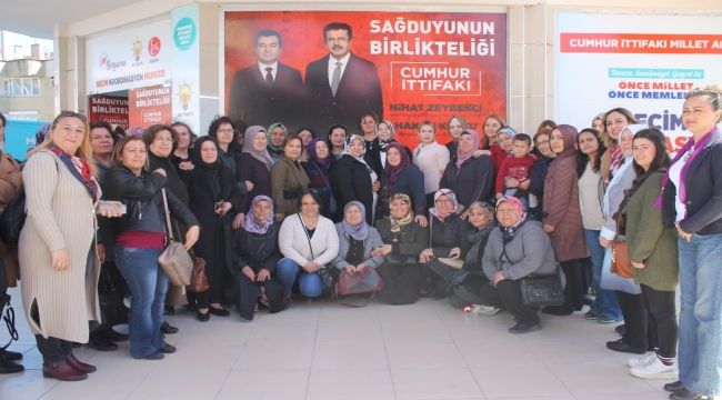 Sahada kadınlar ile birlikte hareket ettiklerini ve her zaman aktif olduklarını ifade eden Ayşen Zeybekci, sözlerine şöyle devam etti: Birlik ve beraberliğimiz bozulmasın diye biz inandığımız ve bildiğimizi vatandaşlara anlatıyoruz. İzmir'e hizmet geldi, bunu bazı ilçelerimizde açıkça görüyoruz. İzmir bazında baktığımız zaman Kınık, Ödemiş, Kiraz, Kemalpaşa bunların güzel örnekleri olduğunu biliyoruz” diye konuştu.