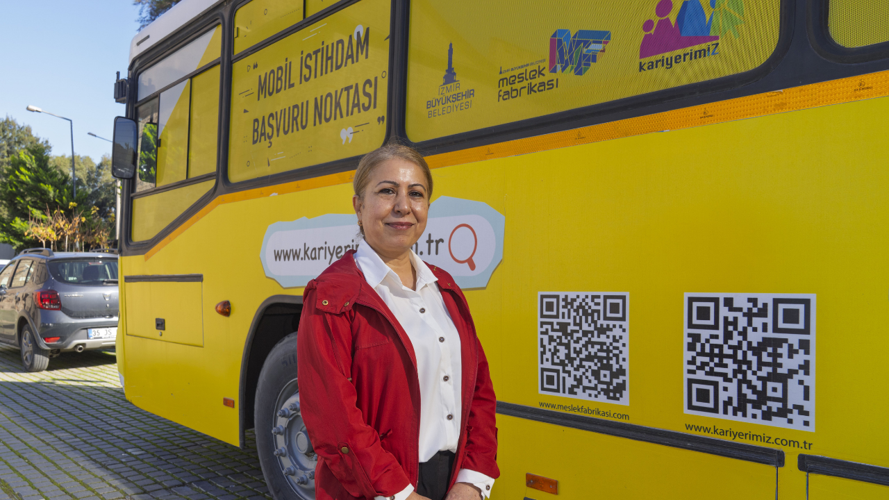 İzmir’de iş arayanlar, Meslek Fabrikası’nın sunduğu kursların yanı sıra istihdam birimi aracılığıyla da farklı sektörlerde çalışma imkânı buluyor. Vatandaşlar, şube ziyaretleriyle, kariyerimiz.com.tr üzerinden online başvuruyla ya da Mobil İstihdam Aracı’na giderek özgeçmişlerini paylaşabiliyor. Yapılan eşleştirmeler sayesinde işverenlerle buluşan adaylar hızlı şekilde işe yönlendiriliyor. Ekim ayında bu yöntemlerle 35 kişi işe yerleştirildi. Kızının üniversite eğitimi nedeniyle İzmir’e göç eden 51 yaşındaki Aynur Dağaşan, Mobil İstihdam Aracı’nı ziyaret ederek özgeçmişini teslim etti ve bir firmada ikram personeli olarak yeni görevine başladı. Dağaşan, yaşadığı sürecin kendisi için beklenmedik bir fırsata dönüştüğünü belirterek, “Adana’dan İzmir’e kızımın üniversite kazanmasıyla geldim. İş ararken kızım Mobil İstihdam Aracı’nı görmüş. Personel çok yardımcı oldu. Böyle bir işle karşılaşacağımı tahmin etmezdim. İzmir Büyükşehir Belediyesi’ne çok teşekkür ederim. Şu an nezih bir ortamda çalışıyorum, kızım da çok mutlu” dedi.