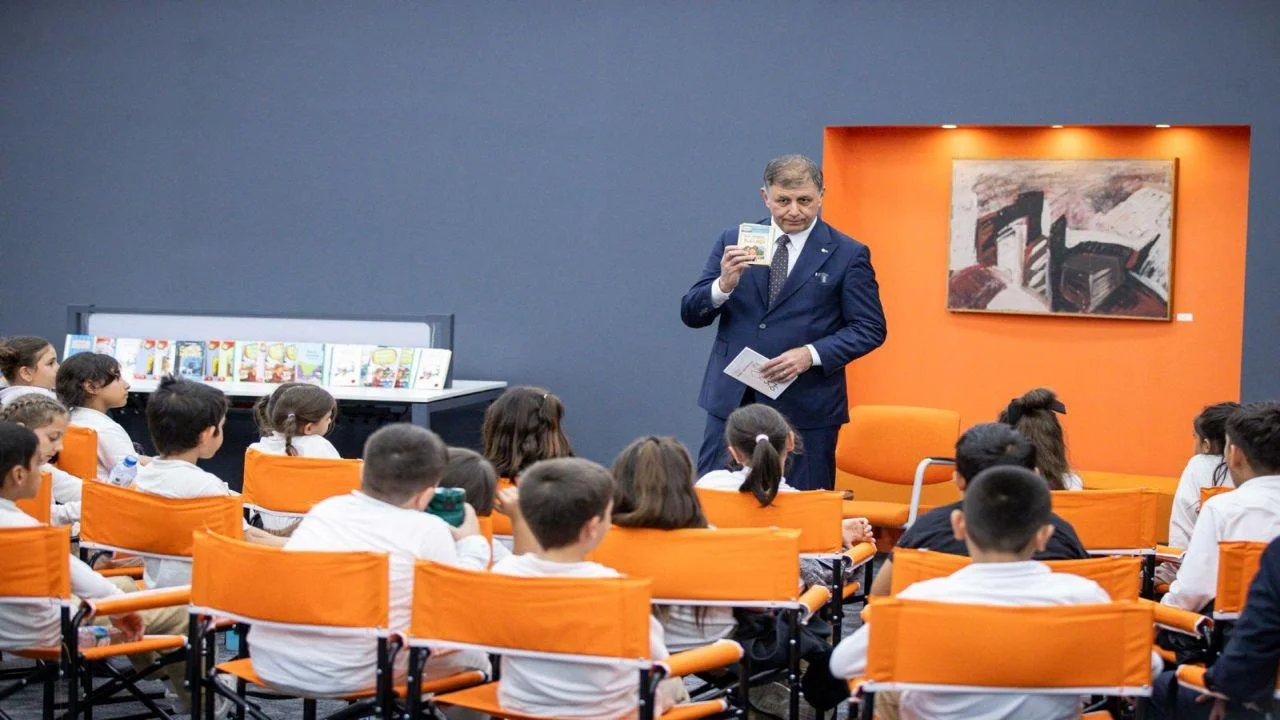 Fuat Köprülü İlkokulu 3. sınıf öğrencileri, Kültürpark’ta bulunan İlber Ortaylı Kütüphanesi’nde unutulmaz bir gün yaşadı. İzmir Büyükşehir Belediye Başkanı Dr. Cemil Tugay, çocuklarla bir araya gelerek onlara keyifli bir okuma saati yaşattı. Ömer Seyfettin’in Pembe İncili Kaftan hikâyesini çocuklara okuyan Başkan Tugay, kendisini can kulağı ile dinleyen çocuklara kitap okumanın önemini de anlattı.