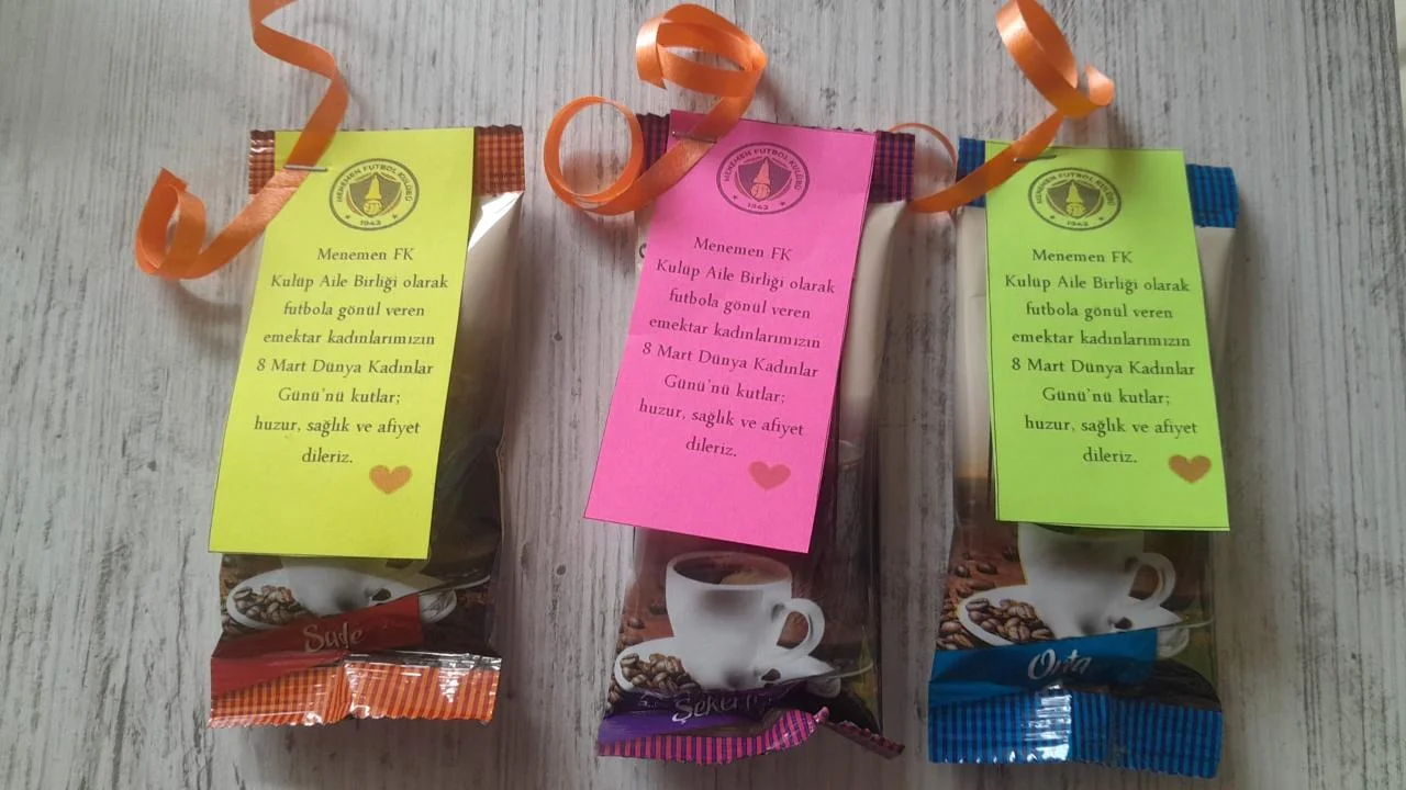 Menemen FK’lı sporcular, 8 Mart Kadınlar Günü'ne özel elleriyle hazırladıkları kahveleri aile üyesi kadınlara ikram etti.