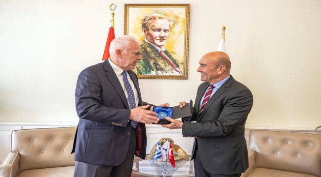 İzmir Büyükşehir Belediye Başkanı Tunç Soyer görev süresinin sona ermesi nedeniyle veda ziyaretinde bulunan Yunanistan’ın Ankara Büyükelçisi Michael Christos Diamessis’i ağırladı. Başkan Soyer, pandemi nedeniyle ertelenen Selanik - İzmir deniz seferleri projesi için çalışmalara tekrar başlayacaklarını söyledi.