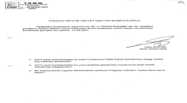 “Buradan İçişleri Bakın Süleyman Soylu’ya sesleniyorum. Yalova Belediye Başkanı Vefa Salman, görevine derhal iade edilmelidir. Çünkü soygun vakasını ortaya çıkaran ve şikayetçi olan Vefa Salman’dır. Halkın oyuyla seçilmiş belediye başkanımızın görevi, makamı gasp edilmiştir. Ayrıca Çanakkale Çan Belediye Başkanımız Bülent Öz’le ilgili yürütülen bir soruşturma çerçevesinde görevinden uzaklaştırılmıştır. İzmir’de Büyükşehir Belediyesi dahil tüm ilçe belediyelerinde inceleme yapıyorsunuz. İnceleme yapın. Biz bundan rahatsız olmayız. Aksine yapılmasının da doğru olduğunu düşünürüz. Ama size bazı sorularım var. Bütün belediye başkanları için soruyorum. 2019 yerel seçimlerinden bu yana Cumhuriyet Halk Partili belediyelere kaç müfettiş gönderdiniz? Hangi belediyelere kaç tane müfettiş gönderildi? 2019 yerel seçimlerinden sonra müfettiş gönderilen Cumhuriyet Halk Partili belediyeler hangileridir? Bu belediyelerde bulunan bulgular nedir? Açılan dava sayısı kaçtır? Aynı soruları diğer partiler için de sordum. Sayın Süleyman Soylu; 2019 yerel seçimlerinden sonra hangi il, hangi ilçe, hangi belde belediyesine müfettiş gönderdiniz? Bu soru önergelerini yanıtlamak zorundasınız. Siz bu ülkenin İçişleri Bakanı iseniz; siyaset gereği baskı ve zulüm makamı olamazsınız. Olmamalısınız. Bunu çok açık ve net söylüyorum. Ama şunu bilin ki; Cumhuriyet Halk Partili belediyeler sizin baskılarınız karşısında yılmayacak ve bütün hizmetlerini sizin baskılarınızı da aşarak yapacak. Sizin zulmünüz ilk seçime kadardır. Ondan sonra da hesap vereceksiniz. Siz yaptığınız bütün hukuksuz uygulamalar nedeniyle halkımıza da mahkemelere de yüce adalete de hesap vereceksiniz.”
