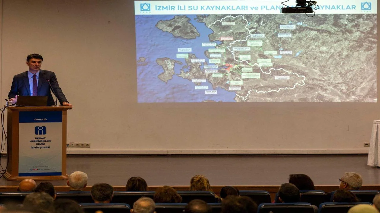TMMOB (Türk Mühendis ve Mimar Odaları Birliği) İnşaat Mühendisleri Odası İzmir Şubesi’nin düzenlediği “İzmir’in Su Sorunları Paneli”, Tepekule Kongre Merkezi’nde yapıldı. Panele İZSU Genel Müdürü Gürkan Erdoğan, İnşaat Mühendisleri Odası (İMO) İzmir Şubesi Başkanı Bengi Atak, İMO İzmir Şubesi yönetim kurulu üyeleri, İZSU bürokratları, akademisyenler ve uzmanlar katıldı. Panelin ikinci ve üçüncü oturumunda ise kentin içme suyu sistemi, iklim krizi, tarihi su yapıları ve sürdürülebilir su yönetimi üzerine kapsamlı değerlendirmelerde bulunuldu.