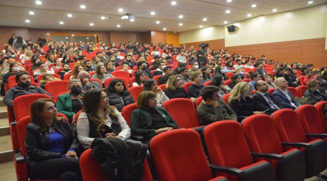 Genel Sekreter Ömer Kökçam, EÜ İletişim Fakültesi Konferans Salonu’nda Egeli gençlerle buluştu. Düzenlenen toplantıya EÜ Rektör Yardımcısı Prof. Dr. Mehmet Ersan, akademik birimlerin yöneticileri, öğretim elemanları ve öğrenciler katıldı. Programın açılışında konuşan Prof. Dr. Mehmet Ersan, “Türkiye’de önemli bir süreç başladı. Öğrencilerimiz bu fuarda bireysel ya da takım olarak üniversitemizi en iyi şekilde temsil ettiler. TEKNOFEST Karadeniz sonrası Rektörümüz Prof. Dr. Necdet Budak’ın talimatları doğrultusunda Ege Üniversitesi organize oldu. Üniversitemiz, bundan sonraki organizasyona da hazırlanacak, takımlar oluşturacak. Bu takımlar farklı alanlarda üniversitemizi temsil edecekler” dedi.